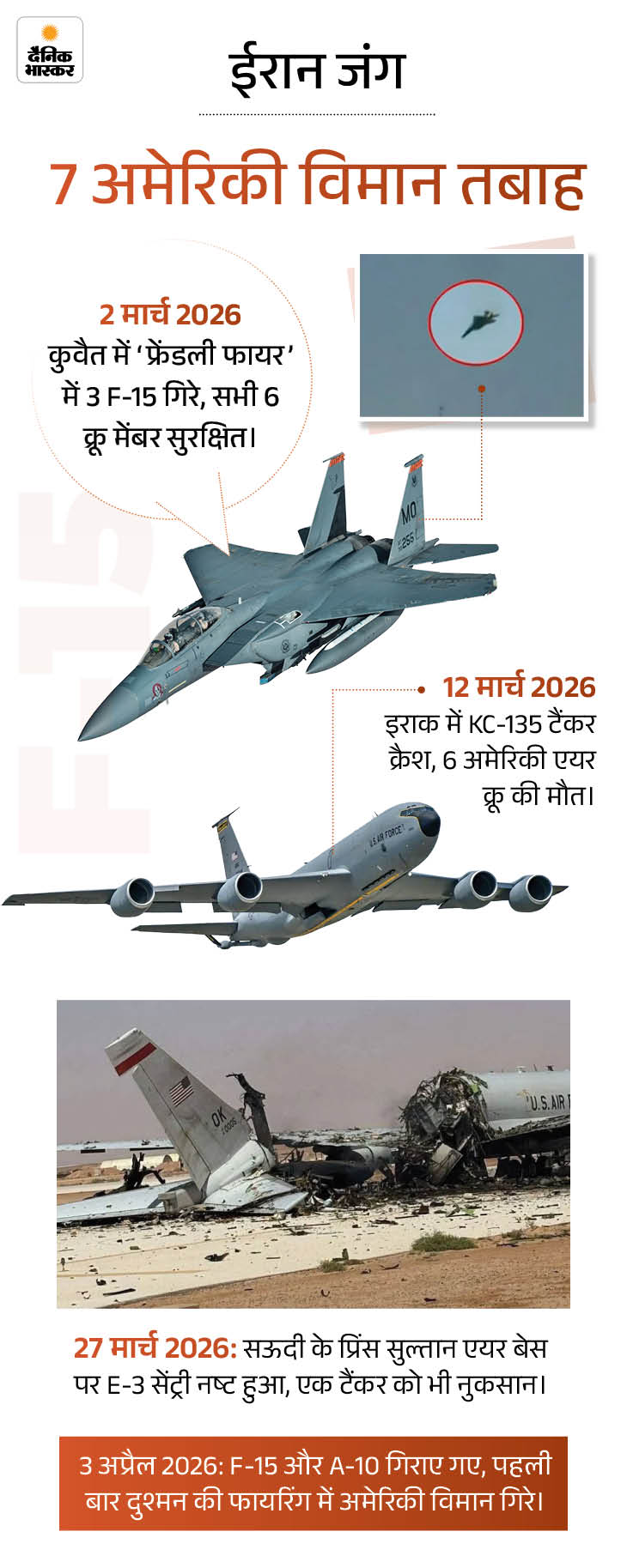ईरान जंग में अब तक 7 अमेरिकी विमान तबाह हुए हैं।