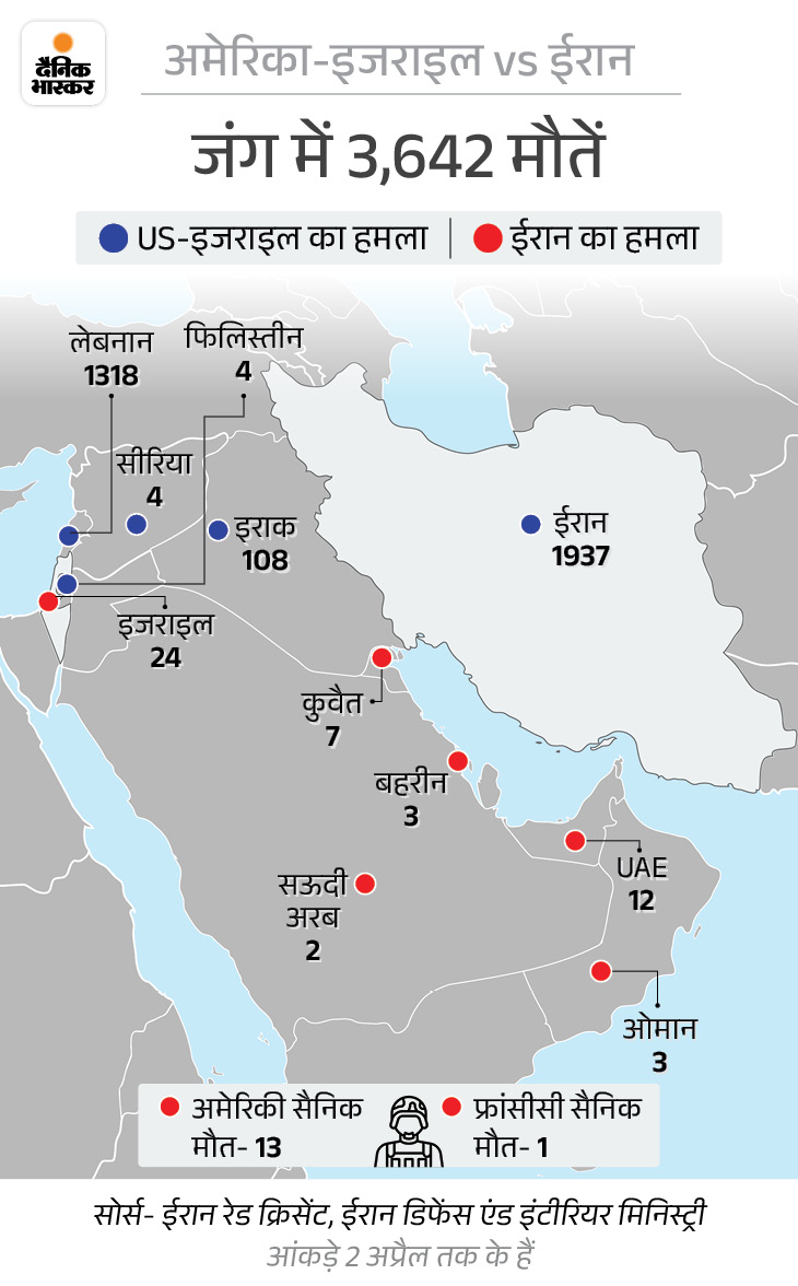 ईरान जंग में अब तक 3,642 मौतें